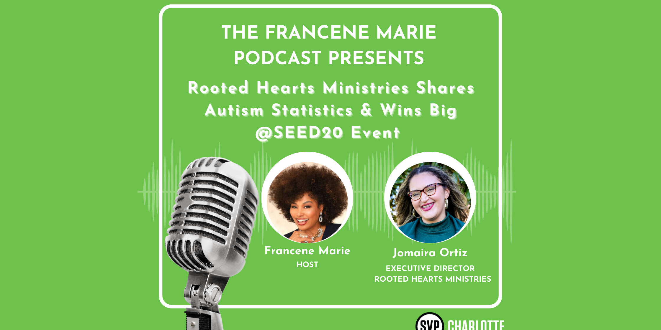 Fran Marie interviews Jomaira Ortiz – Executive Director and Co-founder of Rooted Hearts Ministries, Inc. Her 501c3 understands firsthand the challenges parents face when trying to navigate everything that comes with an Autism diagnosis. Jomaira’s son was diagnosed with Autism diagnosis at 21 months old, and they soon realized they would need to learn all that came with looking for services and therapy to support their child. Jomira won The Brand Building Shop’s Brand Narrative Package, valued at $8,000 at this year’s SEED20 OnStage. Hear their story and how you can support their work by listening to the full podcast episode by clicking here.